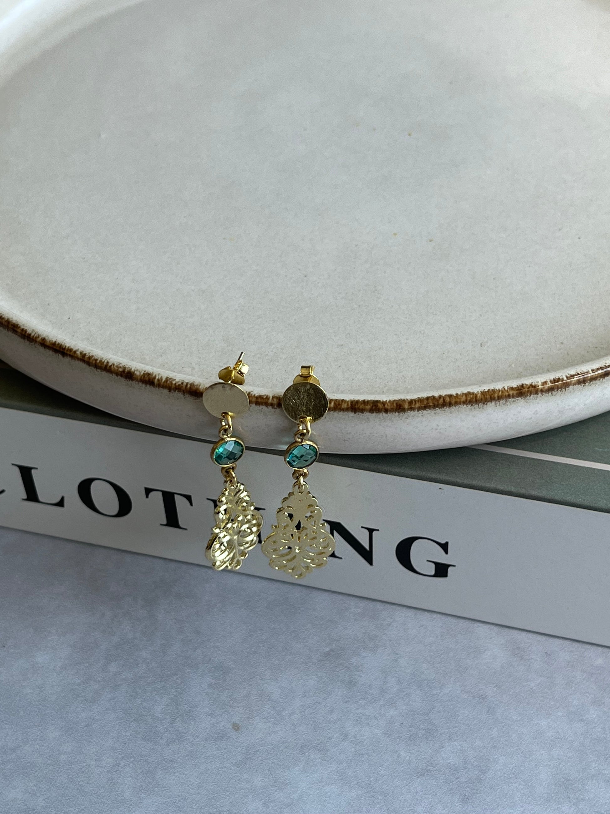 Aros bañados en oro conectados por piedra