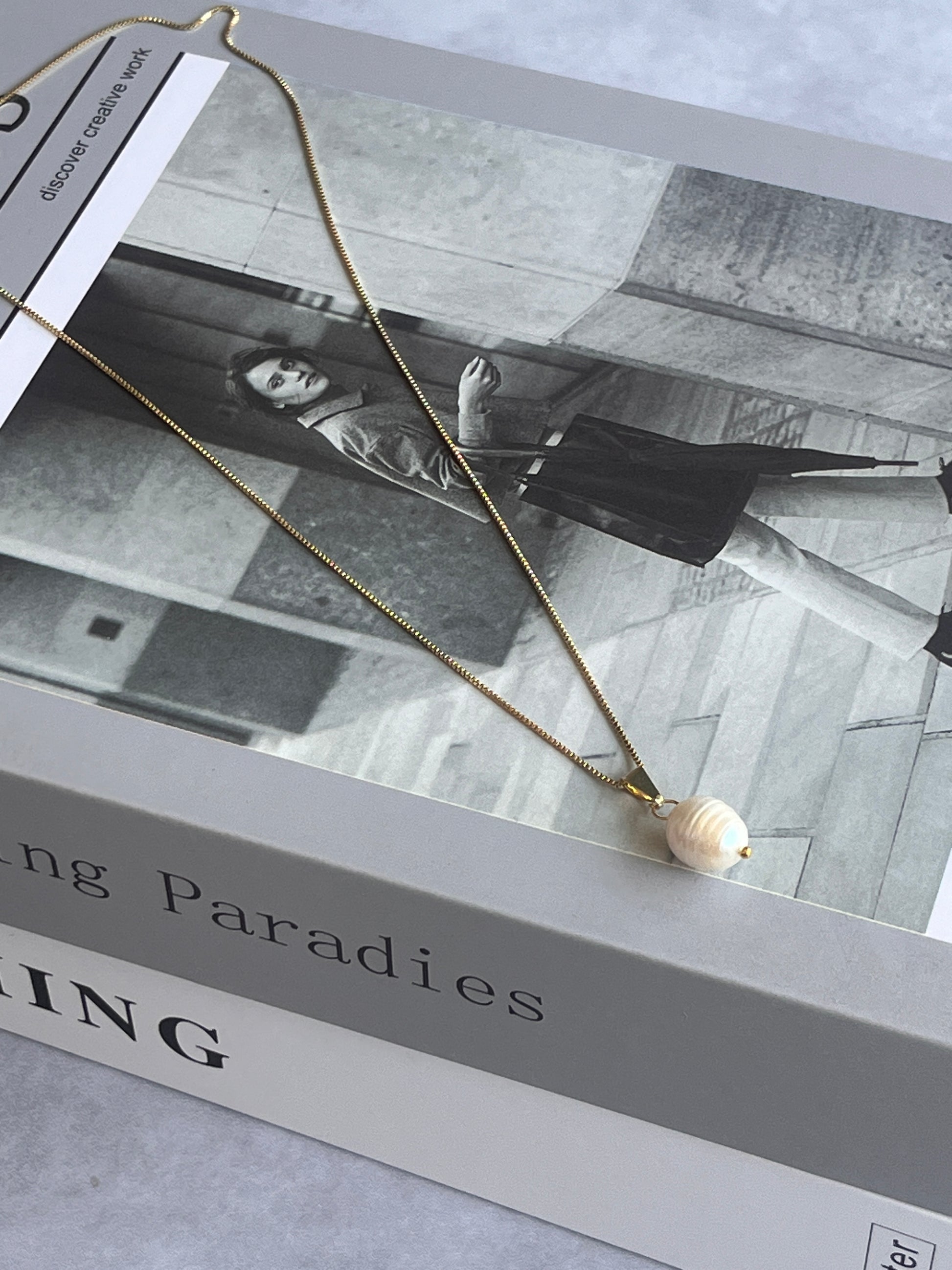 Collar con cadena Veneciana bañada en oro con colgante de Perla de Río