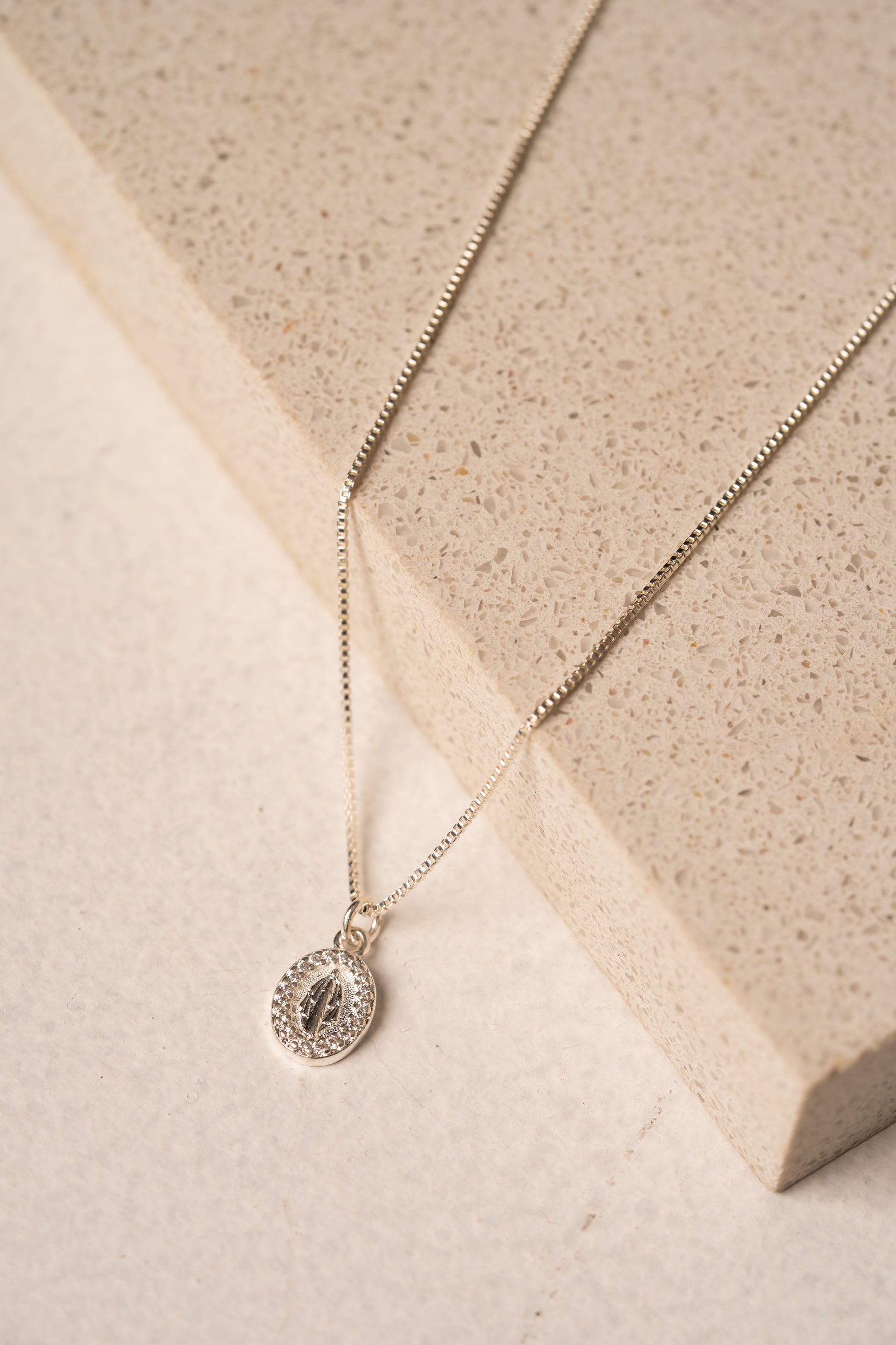 Cadena veneciana con colgante de Virgen de los Rayos con circones