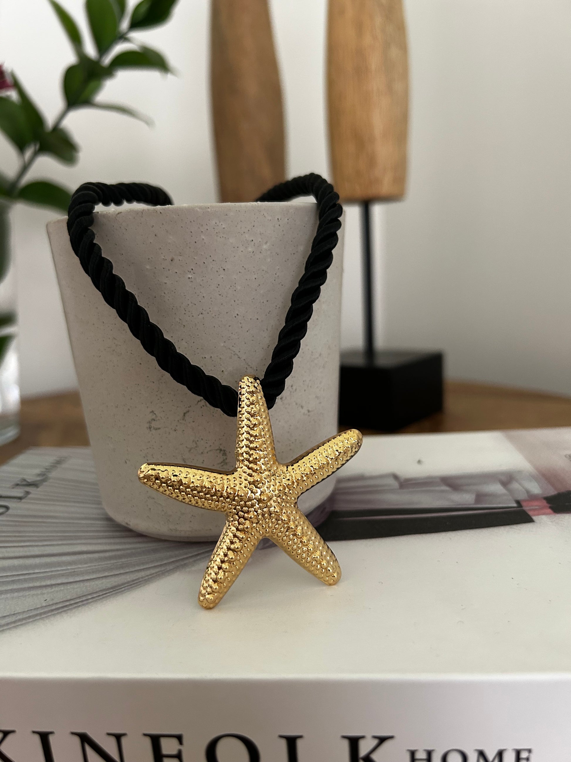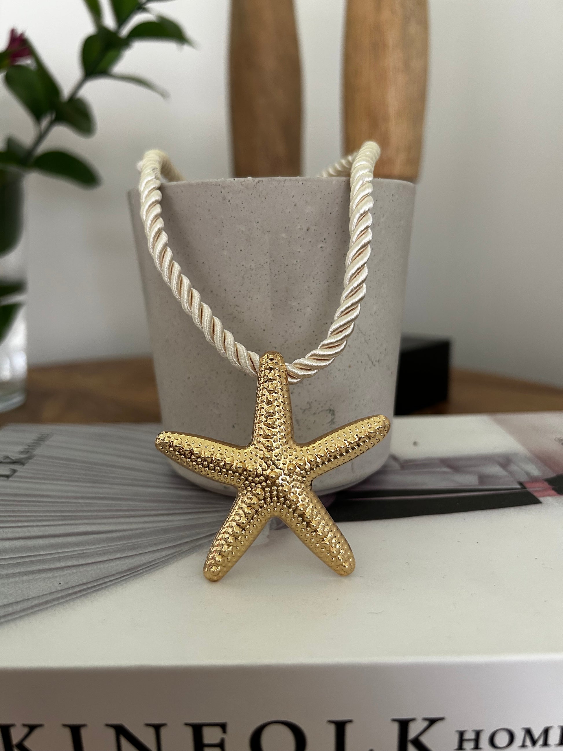 Collar cordón blanco con estrella de mar.