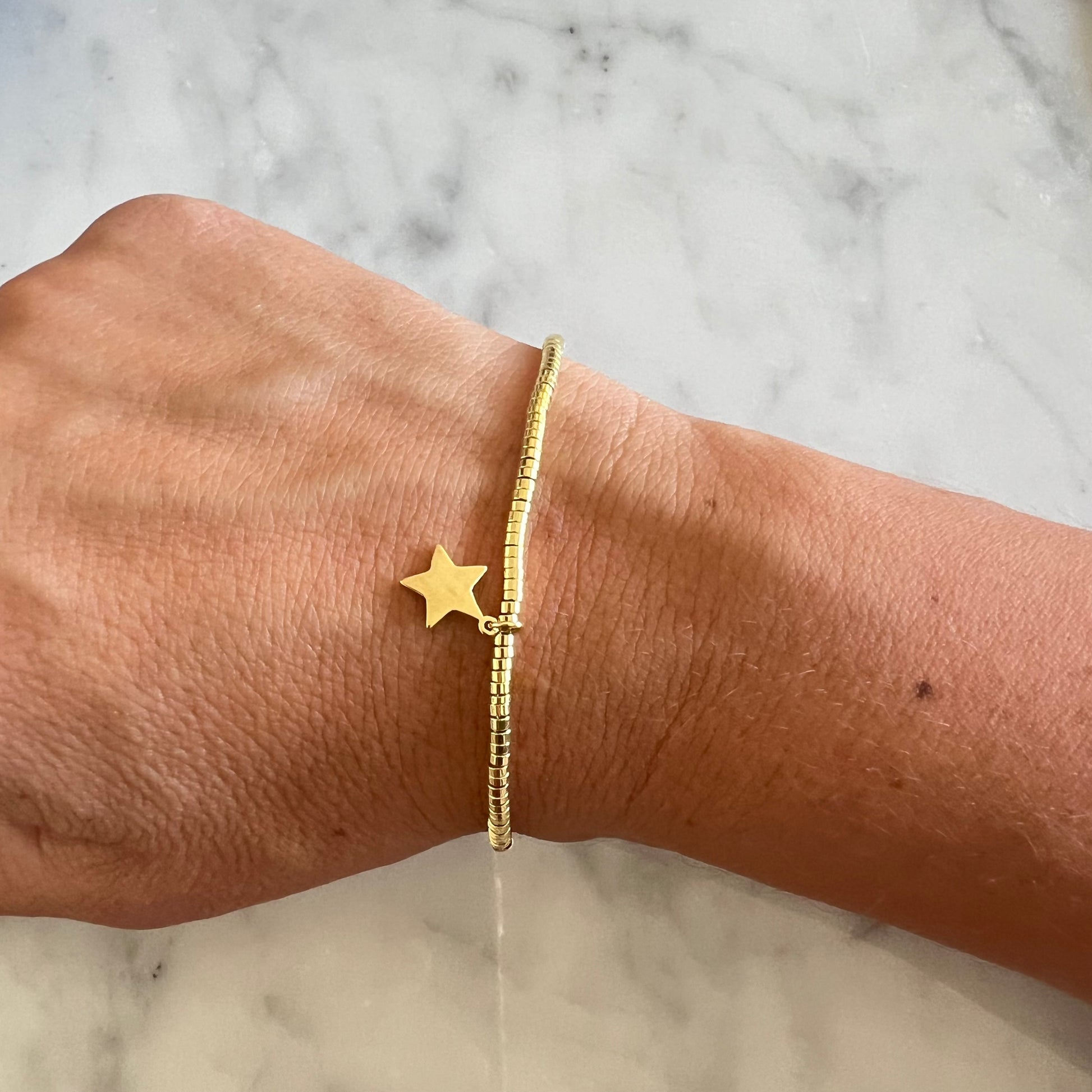 Pulsera mostacillas tubo bañada en oro con Colgate estrella